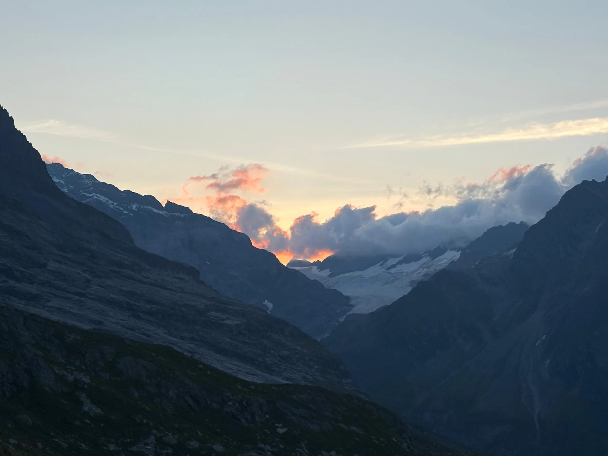 The sunrise over the mountain at the Windgällenhütte. There were about 10 of us witnessing this spectacle, and no one said a word. Words and a photo do not do it justice—you had to be there.